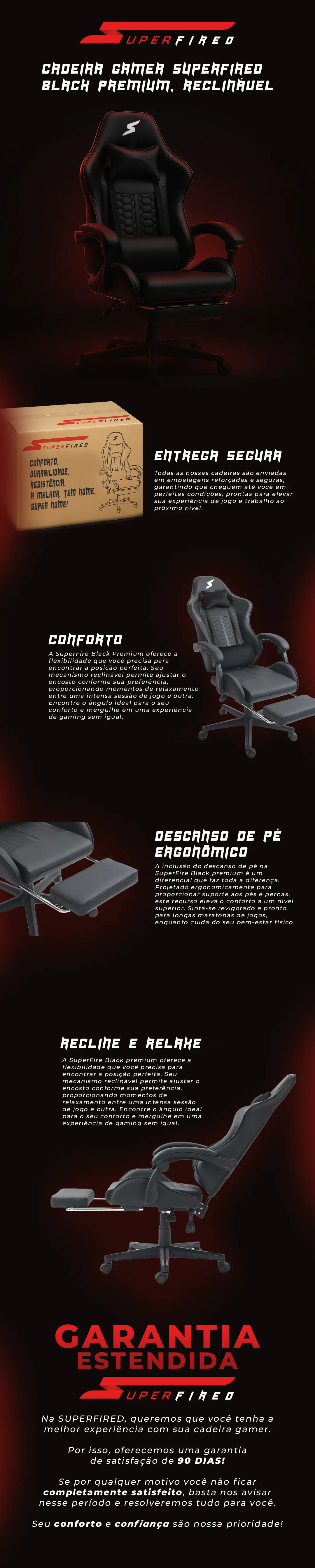 Cadeira Gamer SuperFired Black Premium, Reclinável, Preta, PQ-TG-EFE9JPKL